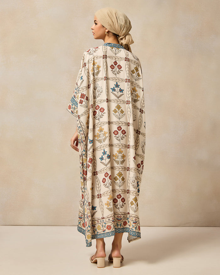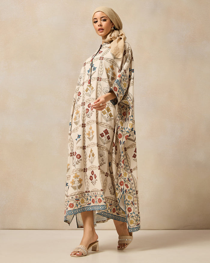 فستان كفتان أنيق يتميز بتصميم واسع ومريح يمنحك حرية الحركة مع لمسة من الجاذبية والأنوثة. تضفي الطبعات الزهرية لمسة ناعمة وحيوية، مما يجعله مثاليًا للخروجات الصيفية أو التجمعات العائلية أو إطلالة مريحة في المنزل. مصنوع من قماش خفيف ومسامي لضمان راحة تدوم طوال اليوم مع إطلالة أنيقة وعصرية..
