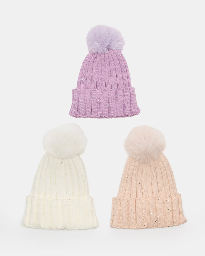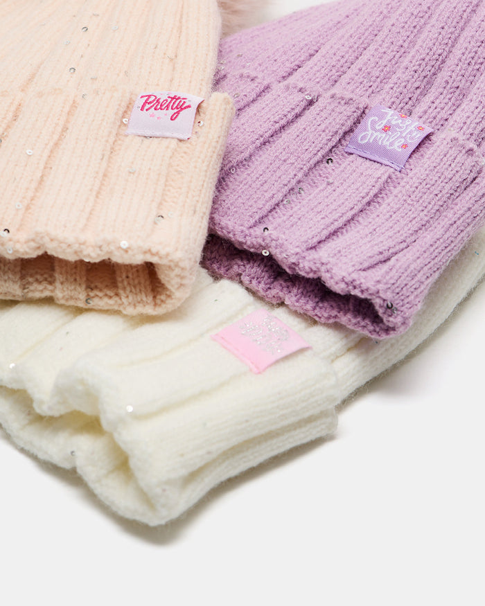 طقم قبعة محبوك بألوان متنوعة للبنات (3 قطع)