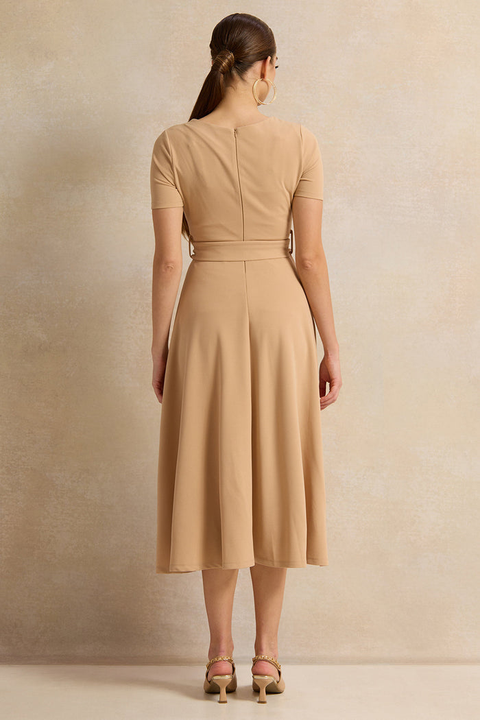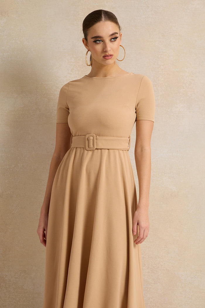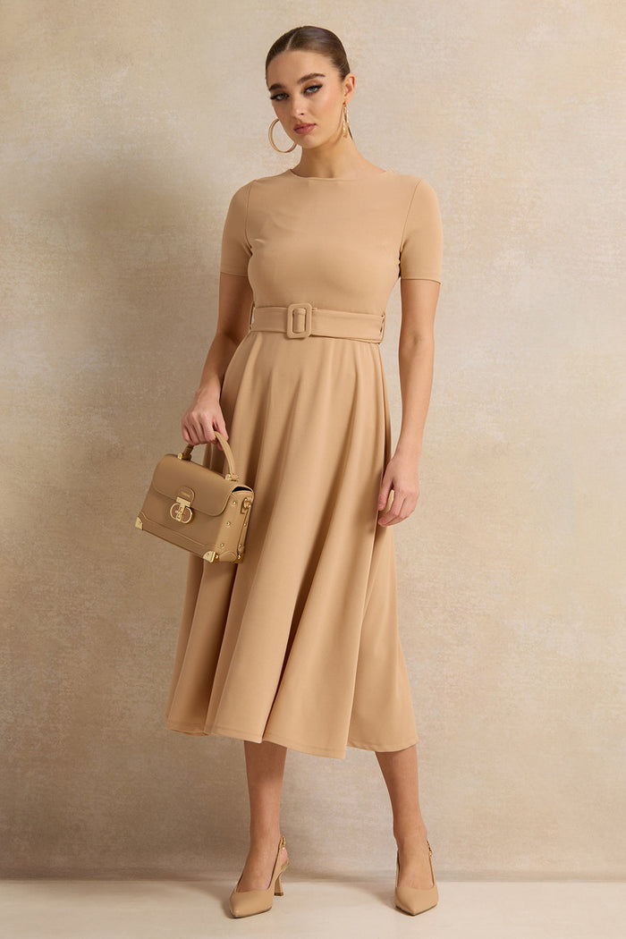 ارتقي بإطلالتك مع هذا الفستان الأنيق، المصمم لتوفير الراحة والرقي. يتميز بقصته الانسيابية وتصميمه الكلاسيكي، مما يجعله مثاليًا للمناسبات اليومية أو الخاصة. يتميز هذا الفستان بأكمام قصيرة وتصميم سادة.