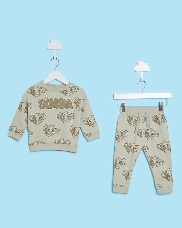 طقم رياضي بطبعة سيمبا باللون البيج للأولاد الرضّع (قطعتين)