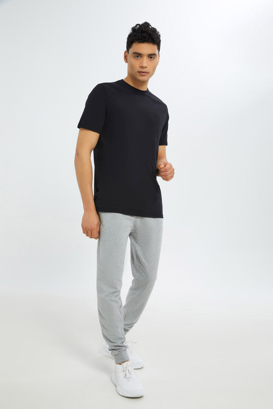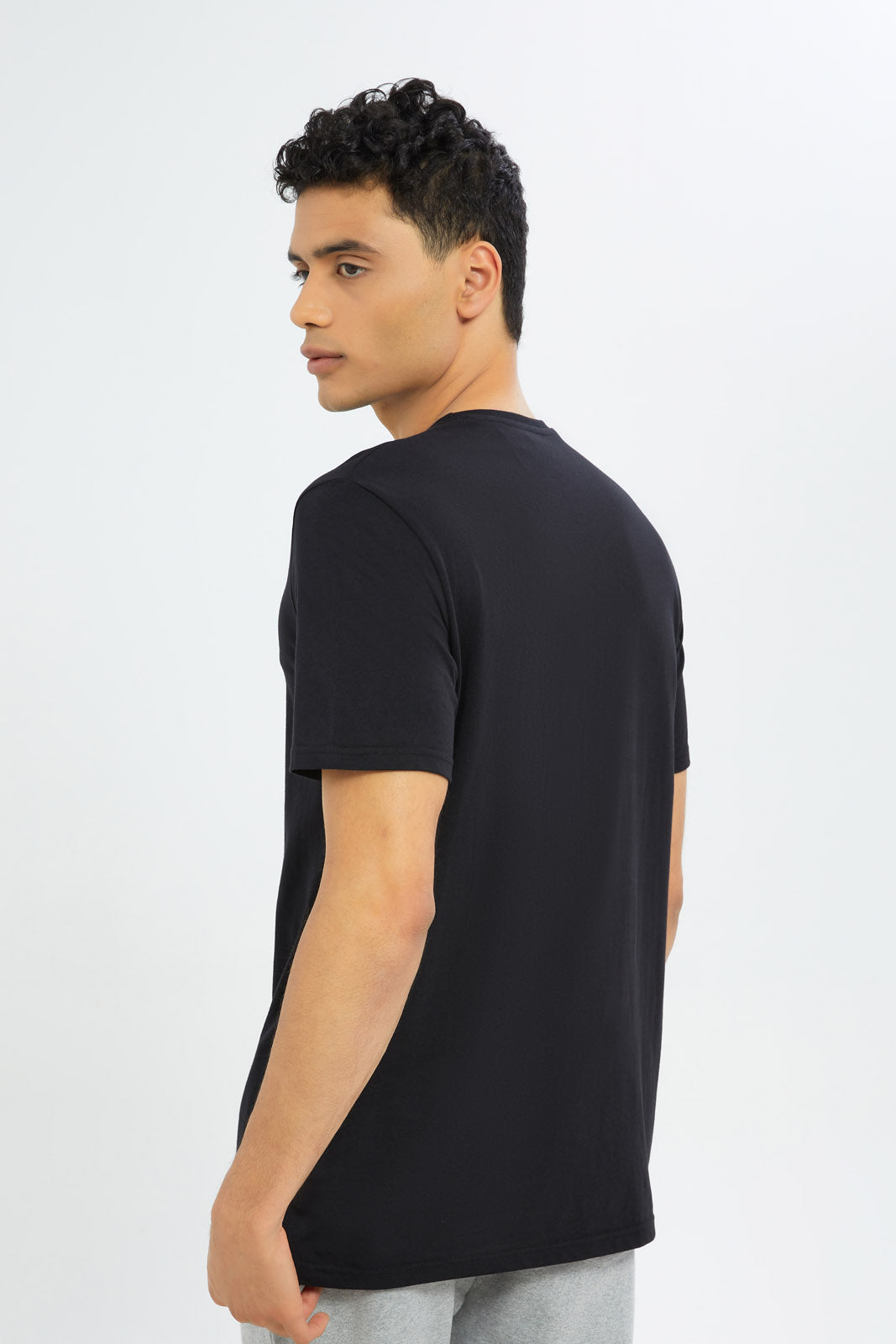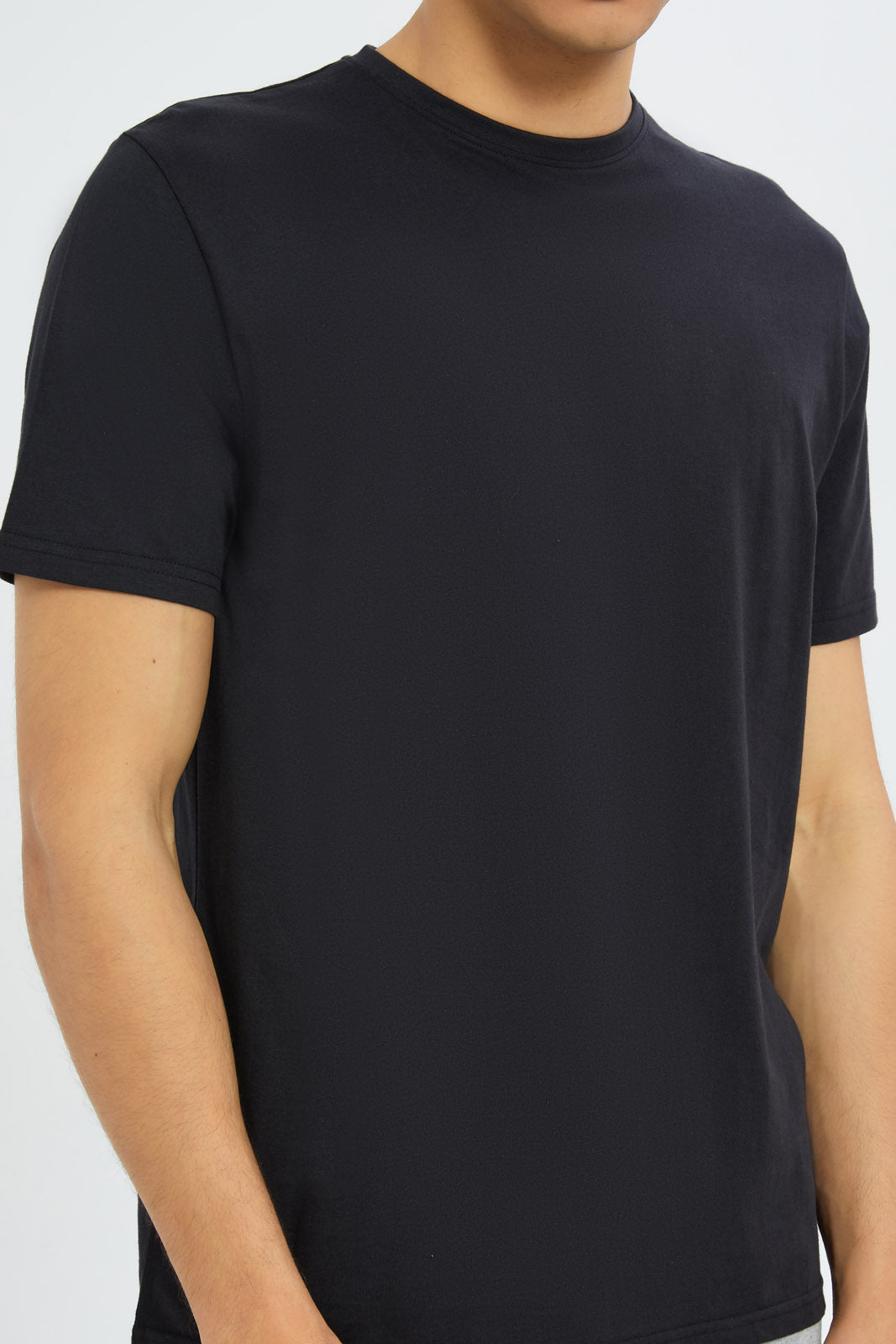 تيشيرت سادة برقبة دائرية باللون الأسود للرجال