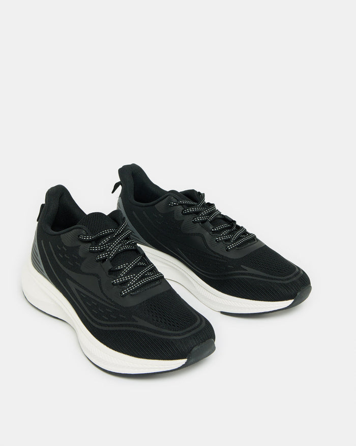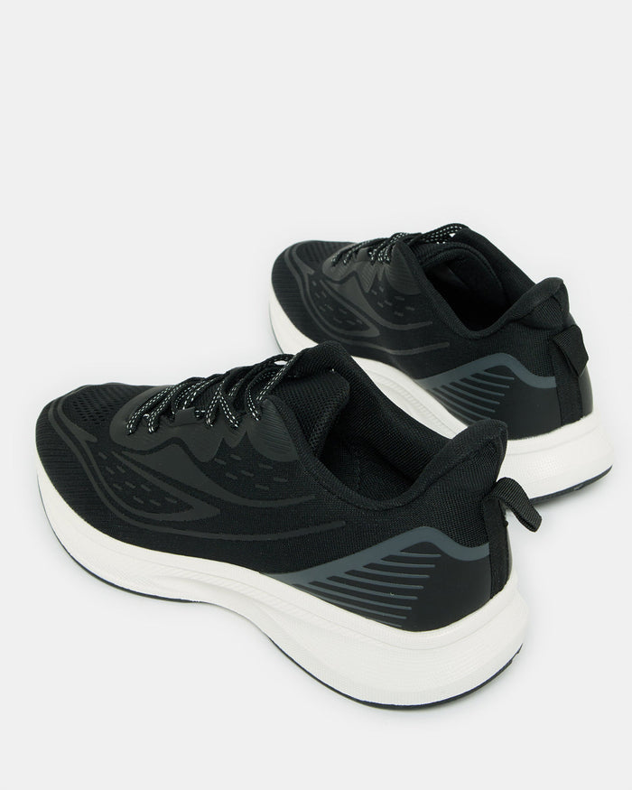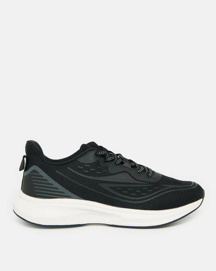 حذاء رياضي بأقمشة متداخلة باللون الأسود للرجال