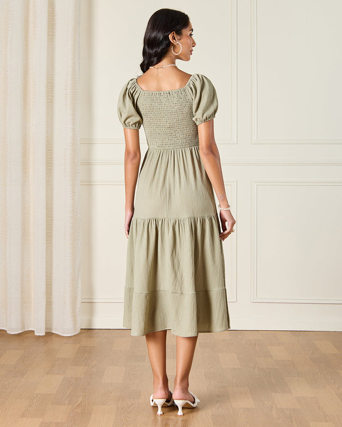 فستان بملمس بارز باللون الأخضر للنساء