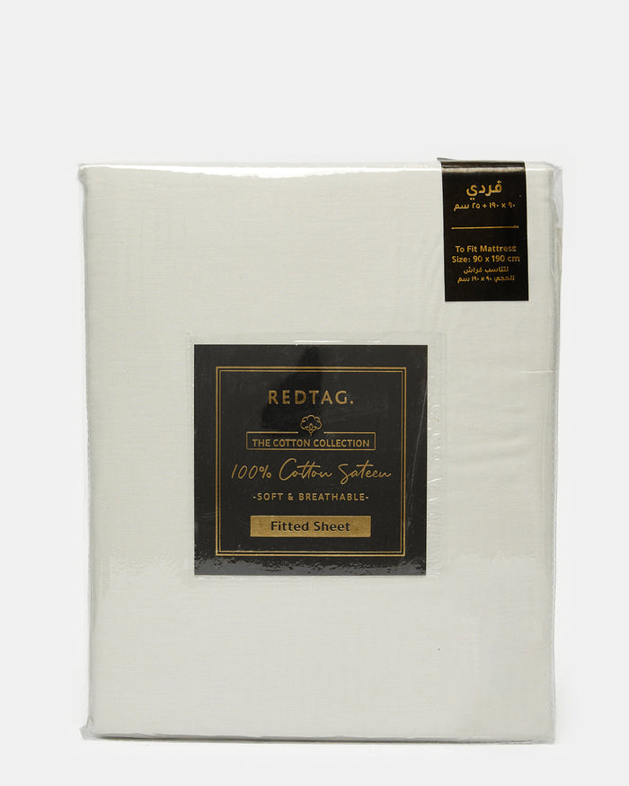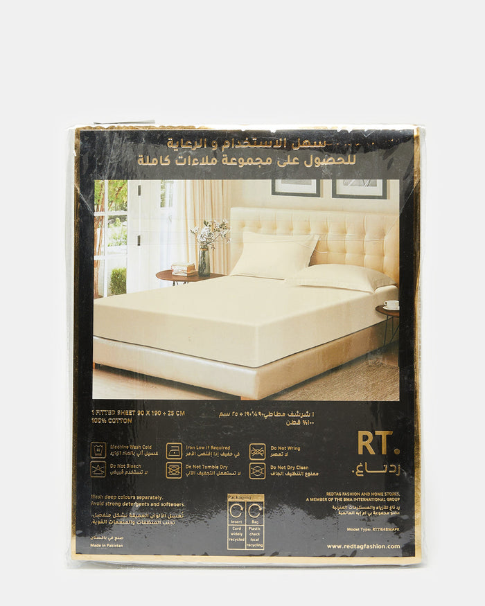 شرشف مطاطي قطن باللون العاجي (فردي)