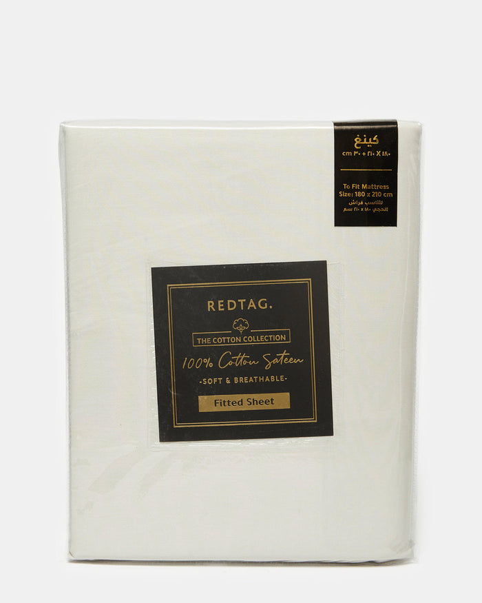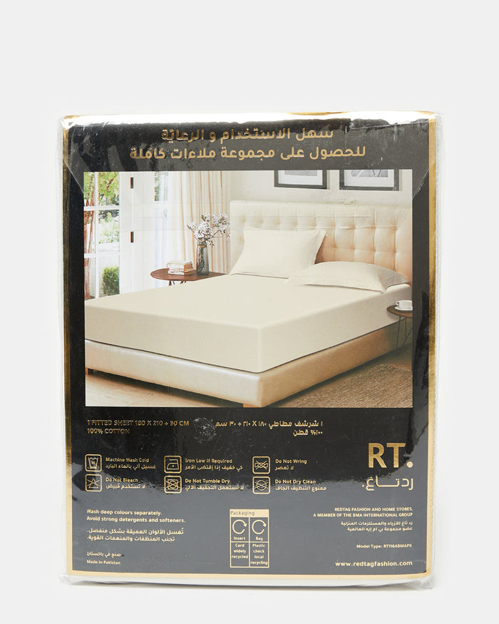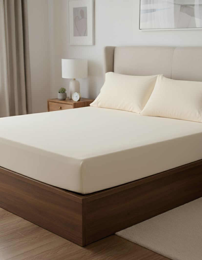 شرشف مطاطي قطن باللون العاجي (كينغ)