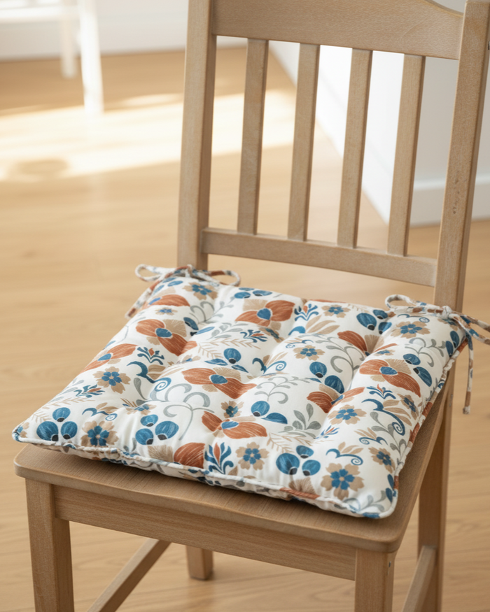 وسادة كرسي بطبعة أزهار باللون العاجي