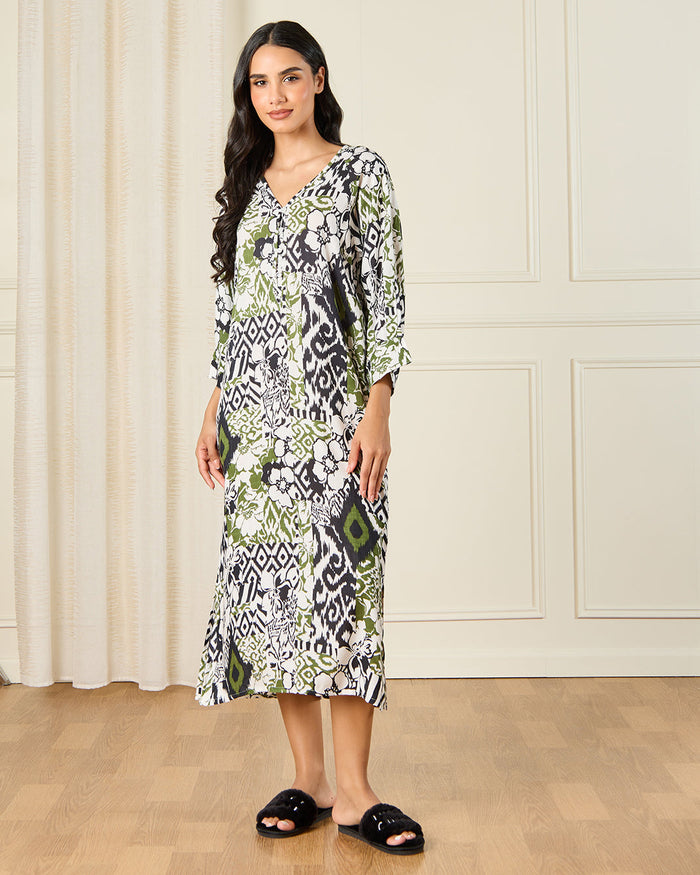 فستان نوم ناعم للنساء، مصنوع من قماش قابل للتنفس لضمان نوم مريح. تصميمه الأنيق يجعله مثالياً للاسترخاء في المنزل أو وقت النوم.