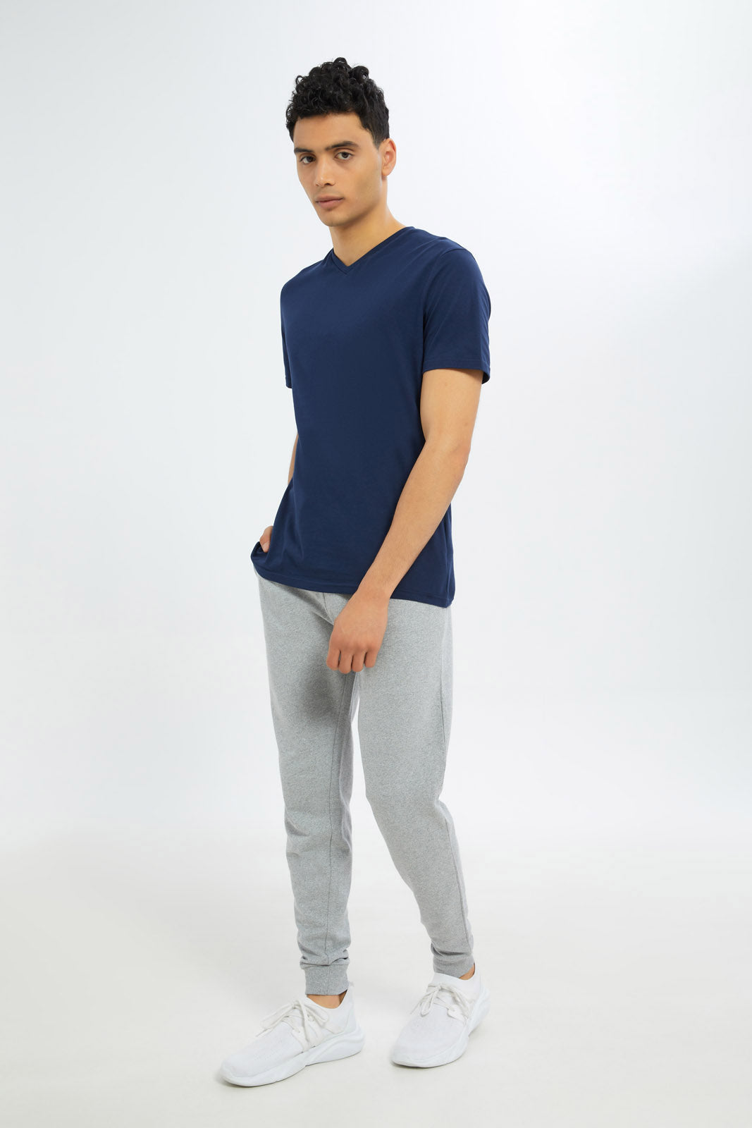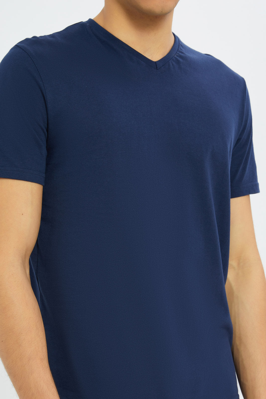 تيشيرت سادة بأكمام قصيرة باللون الكحلي للرجال