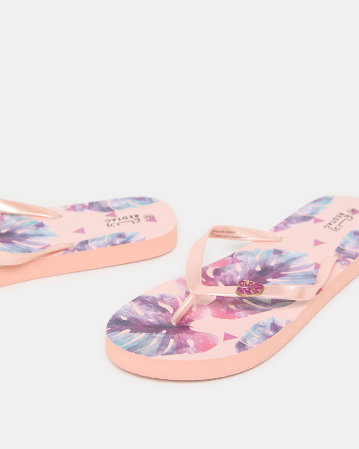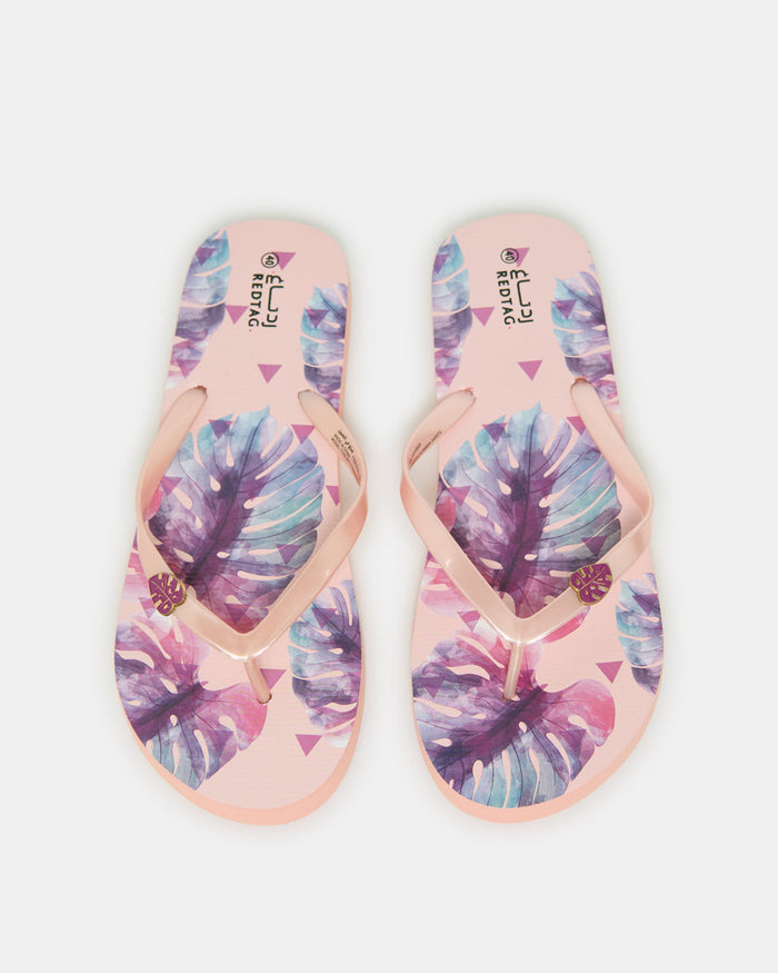 شبشب بإصبع مطبوع باللون الوردي للنساء