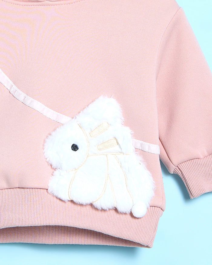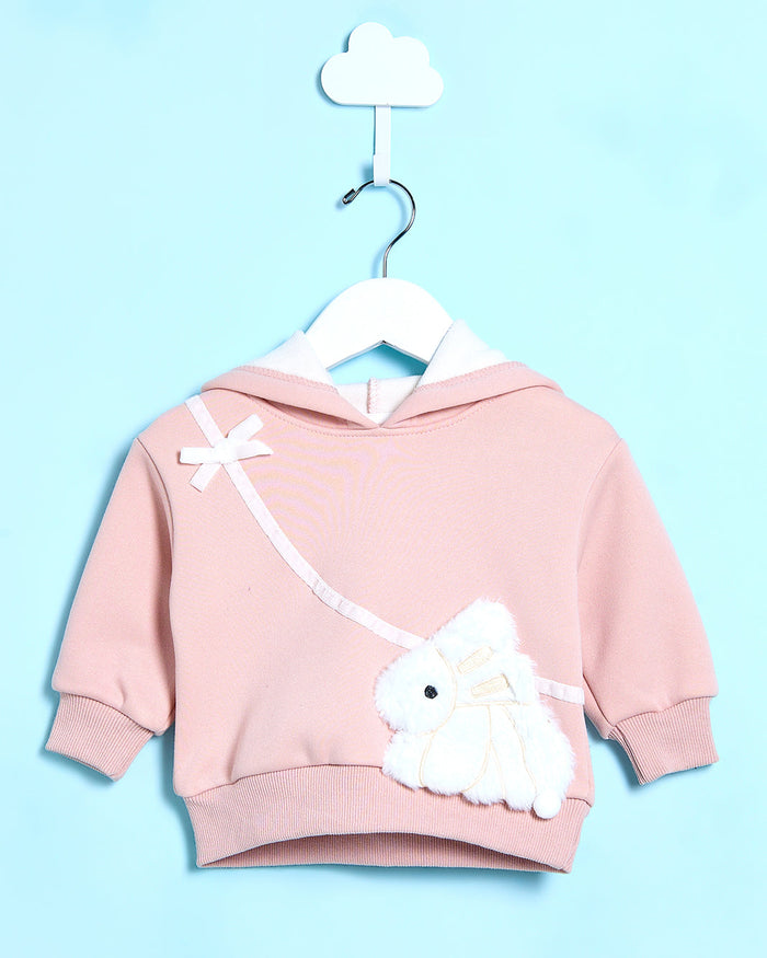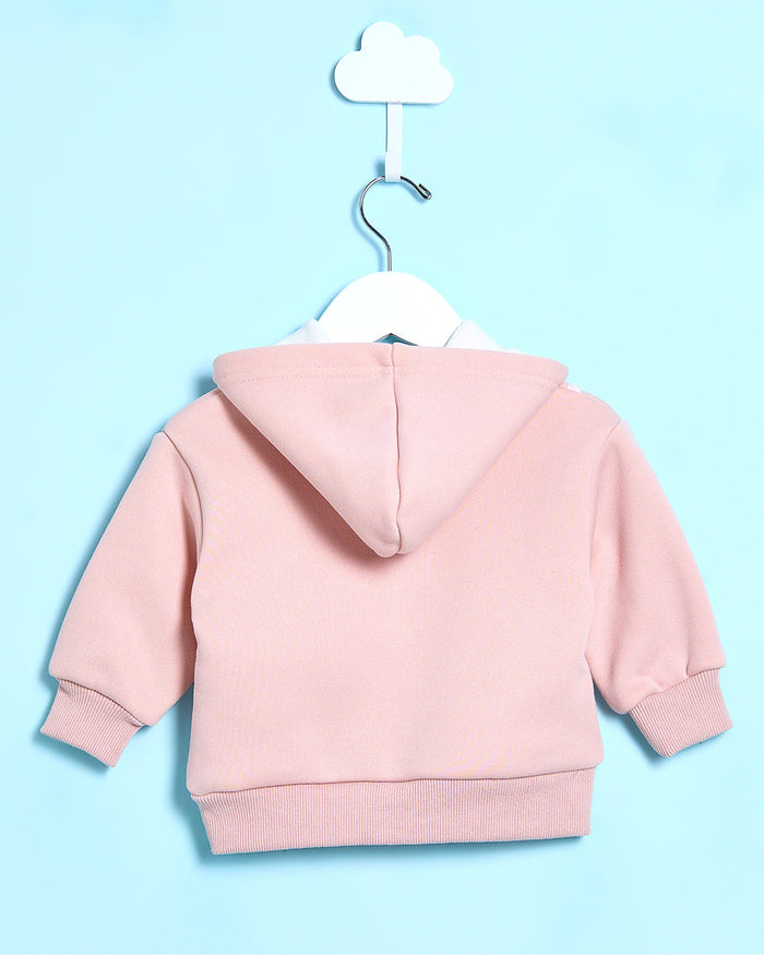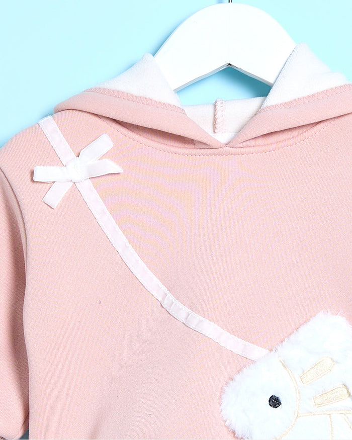 سويتشيرت مزين بقبعة باللون الوردي للبنات الرضّع