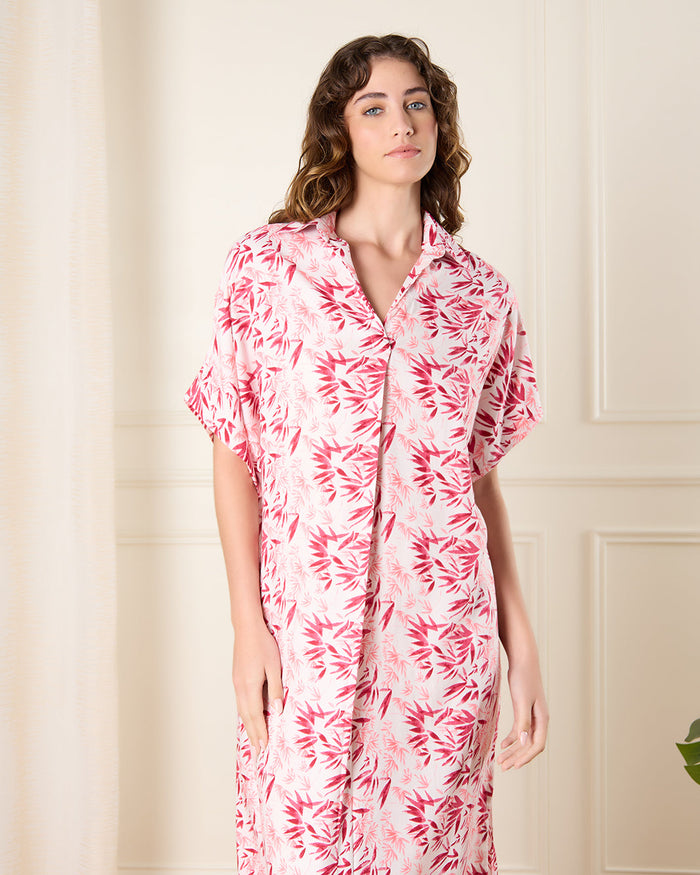 فستان نوم مطبوع باللون الأبيض والأحمر للنساء