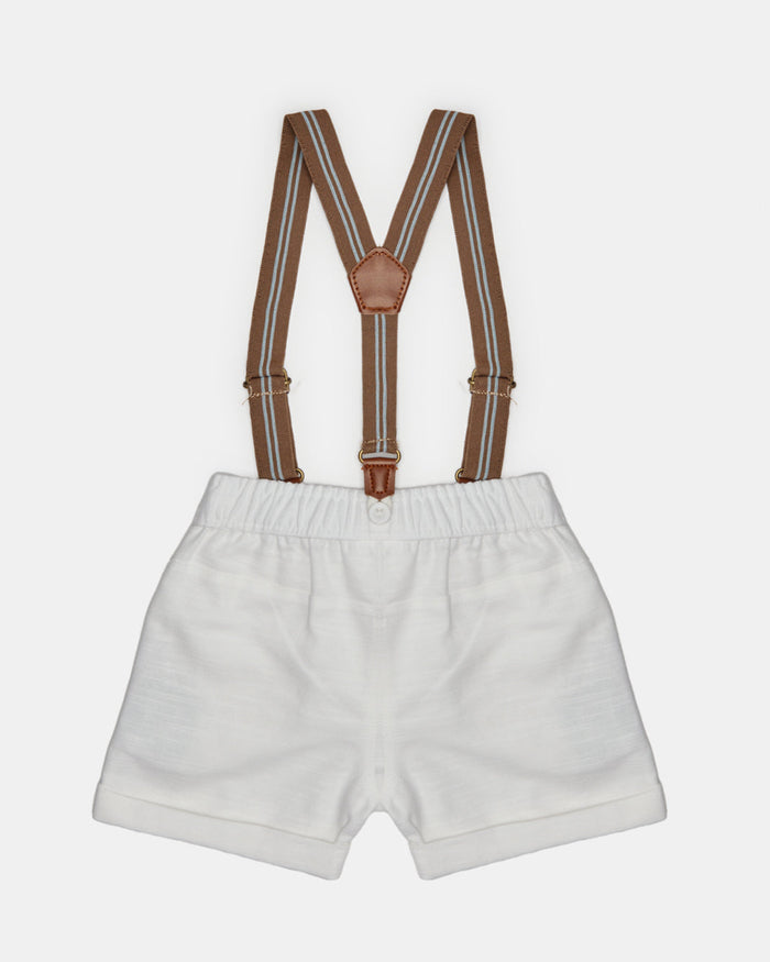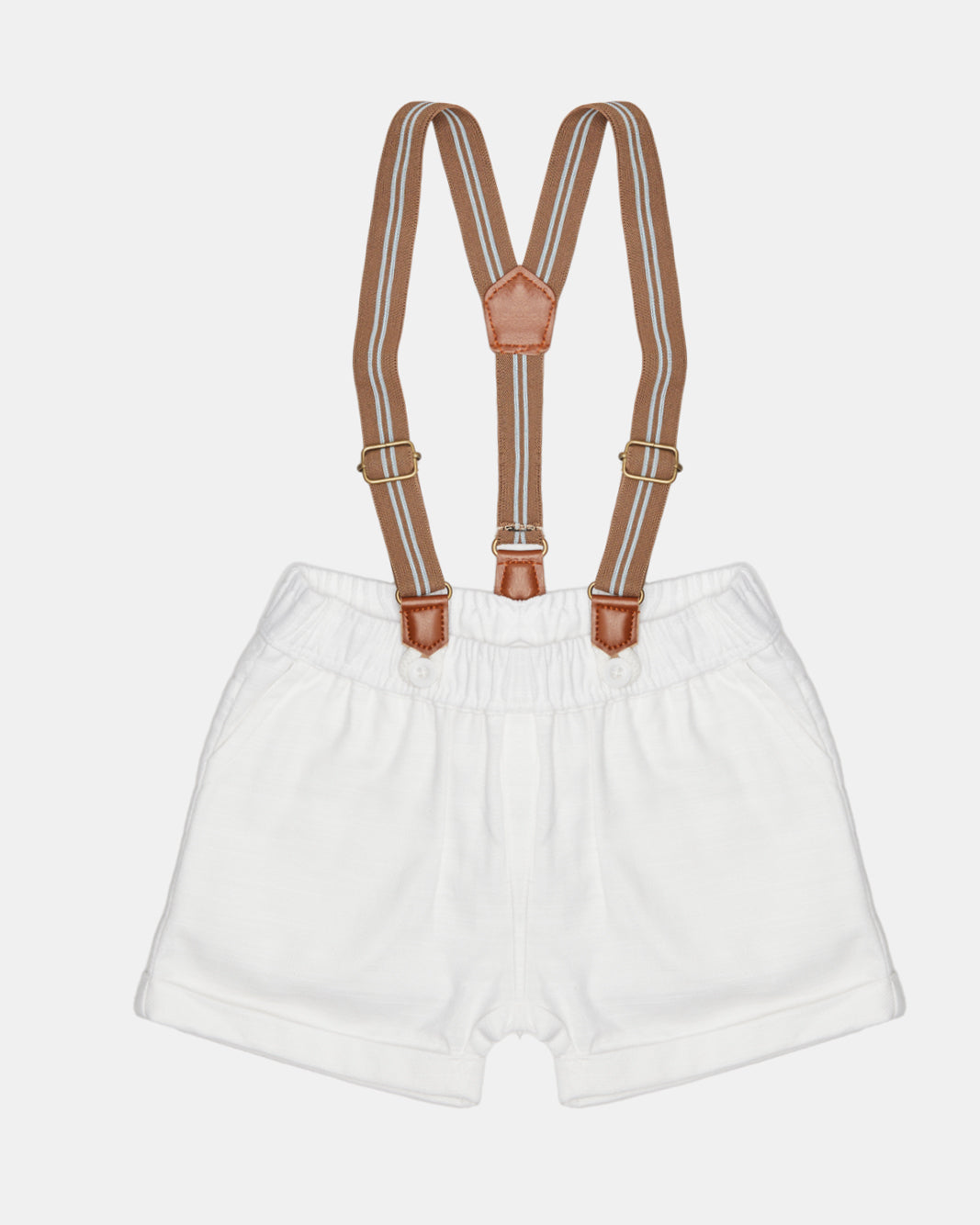 شورت بحمالات باللون الأبيض للأولاد الرضّع