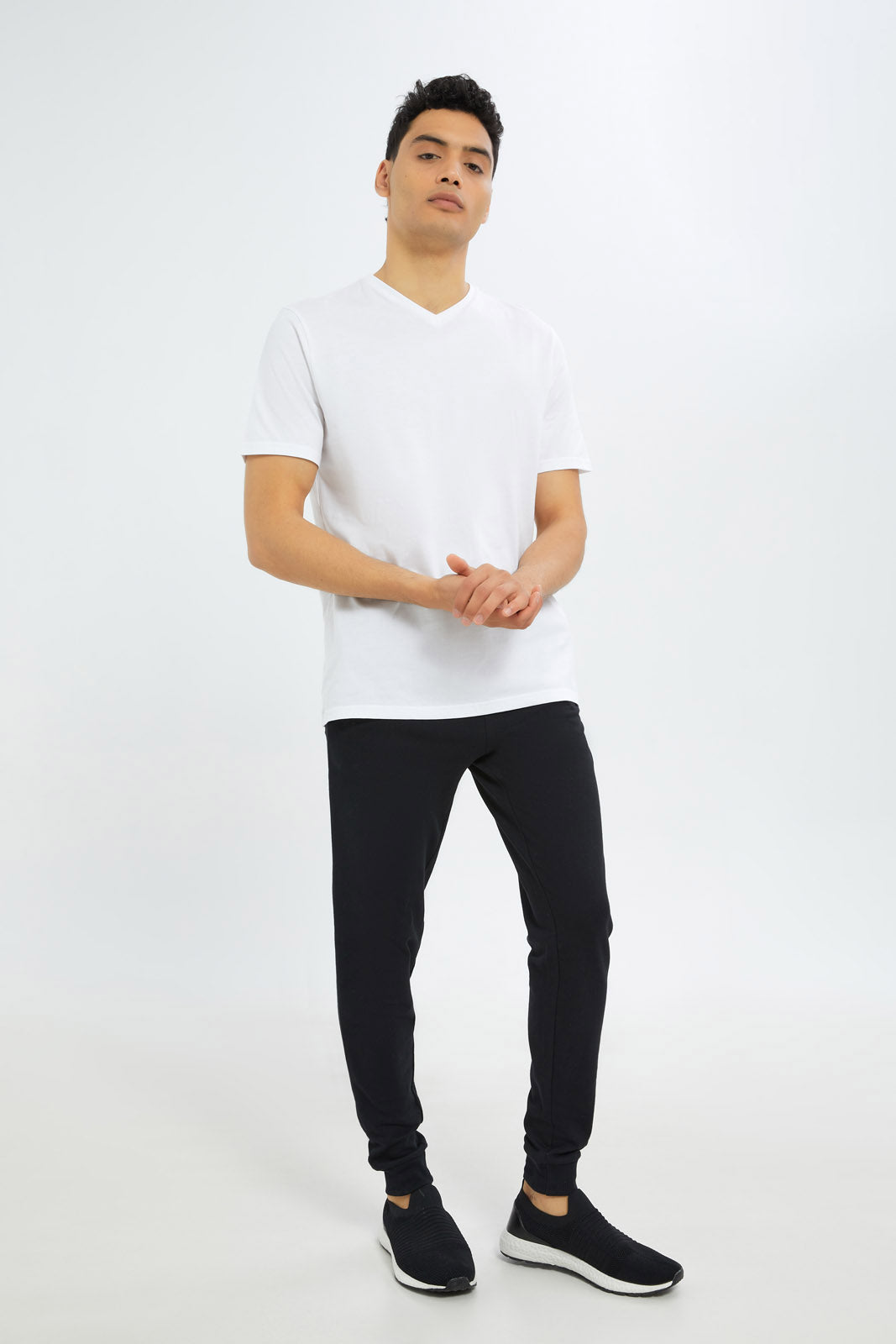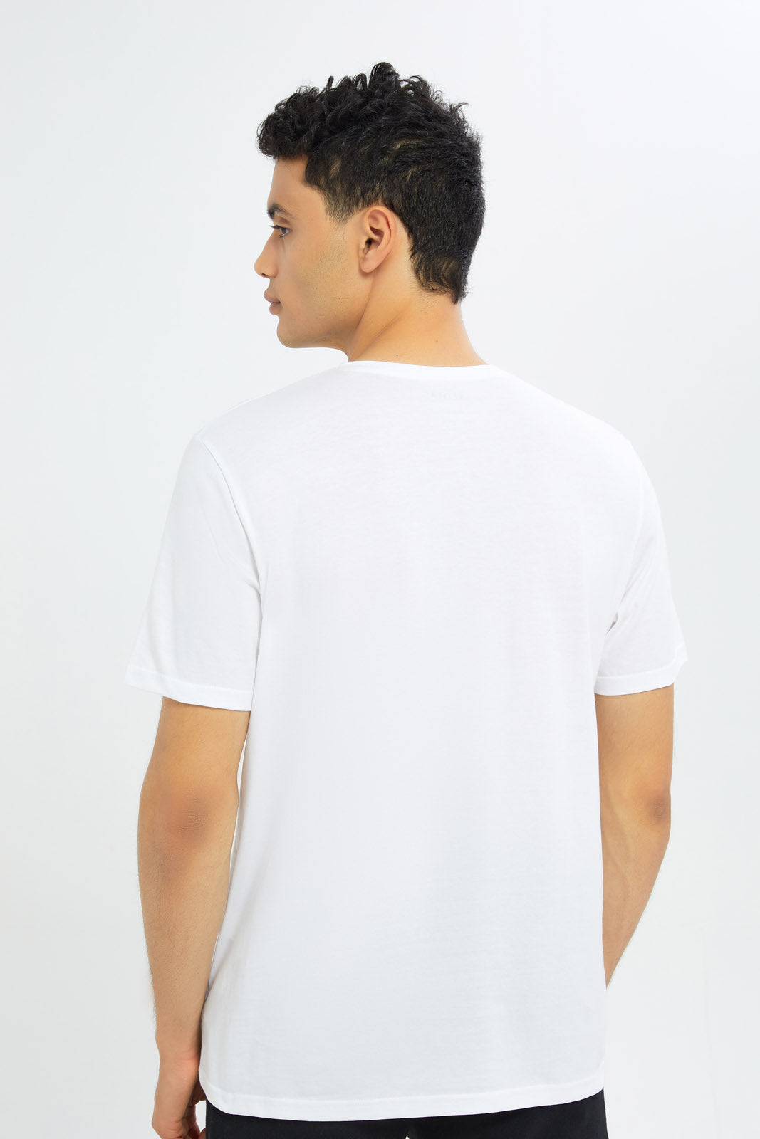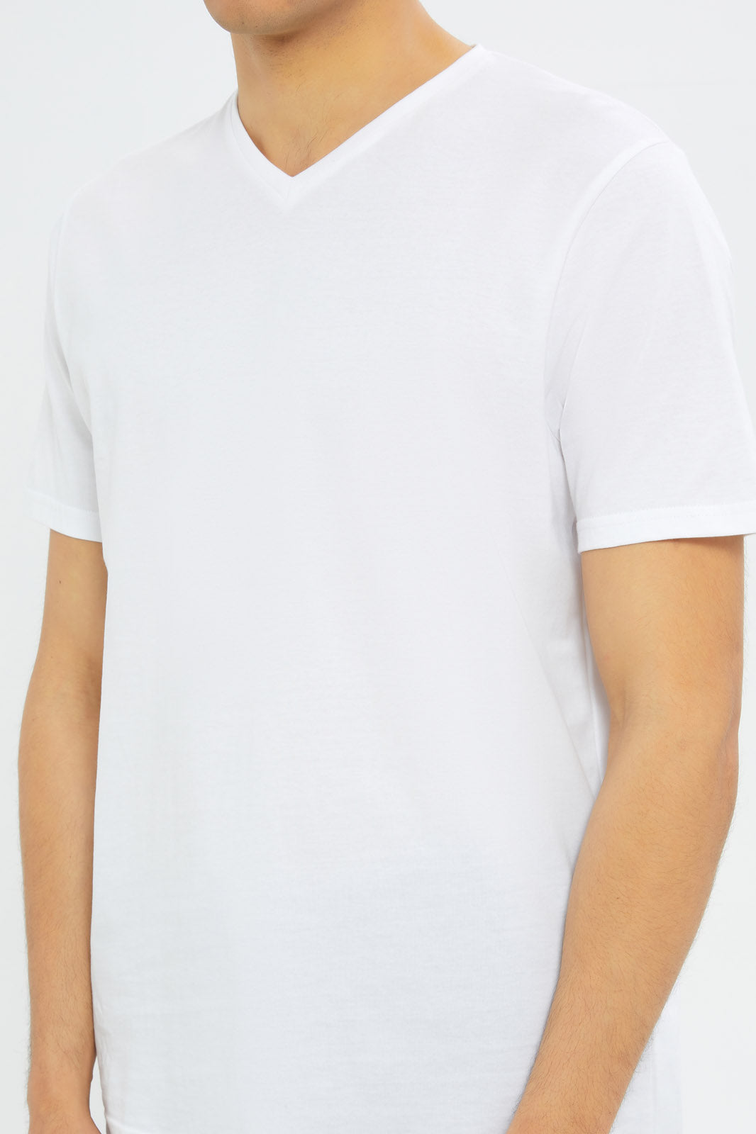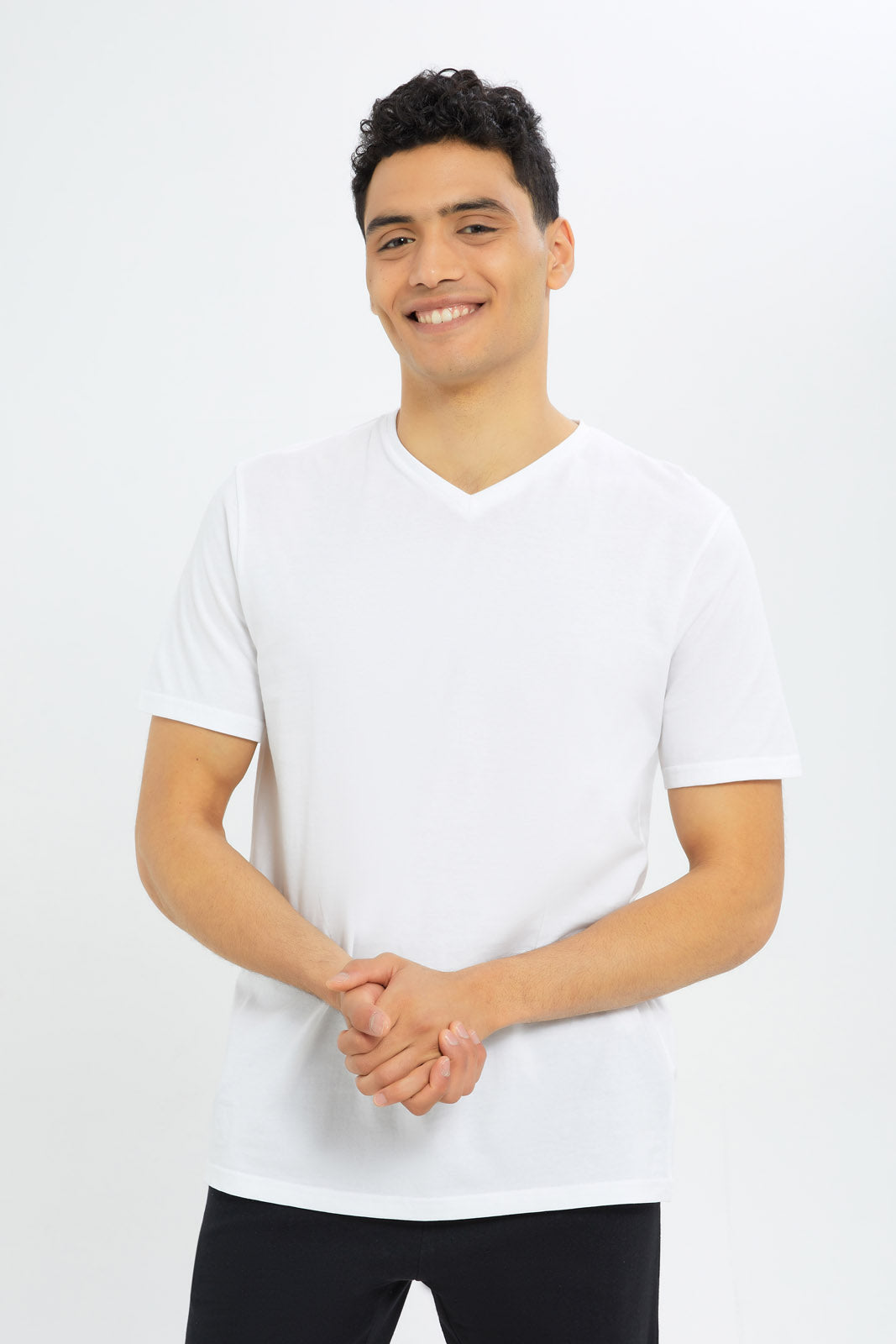 تيشيرت سادة باللون الأبيض برقبة بشكل V