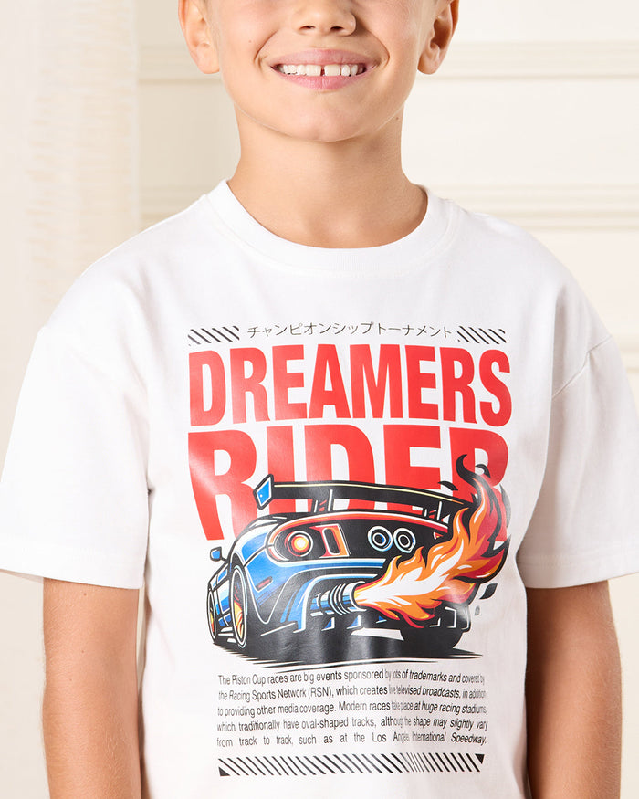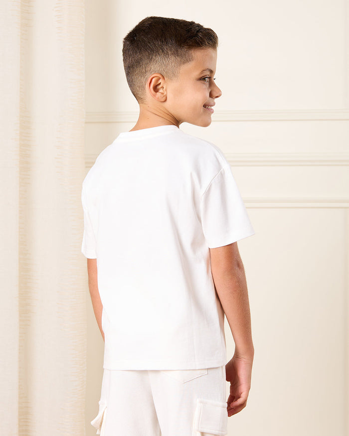 تيشيرت مطبوع باللون الأبيض للأولاد الصغار