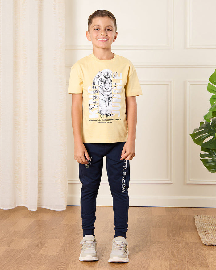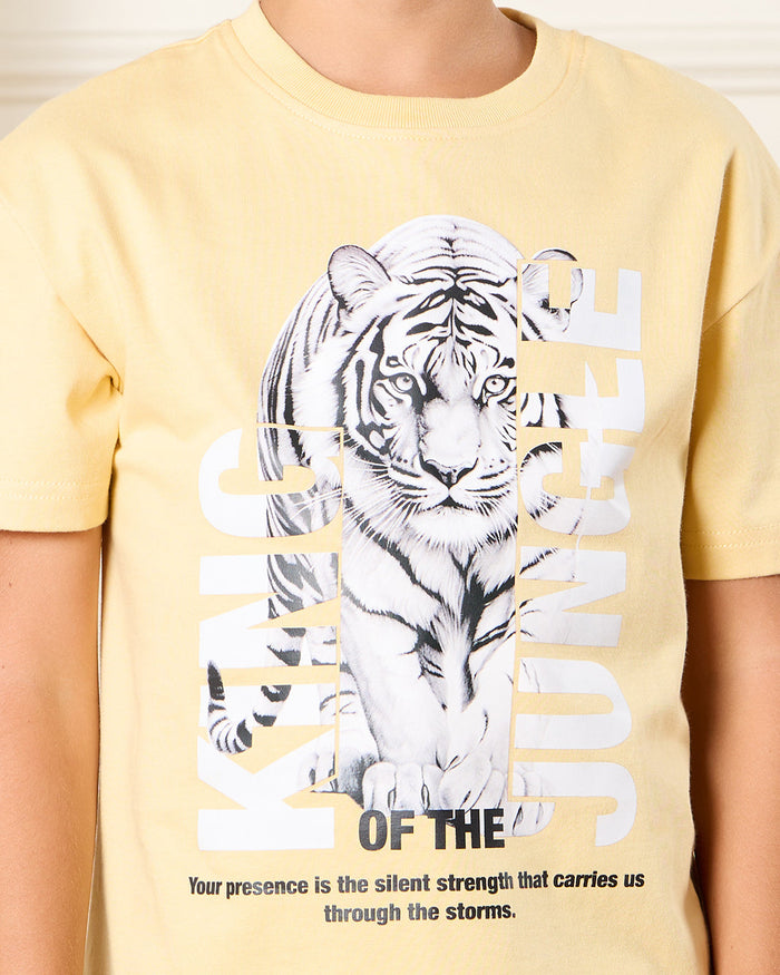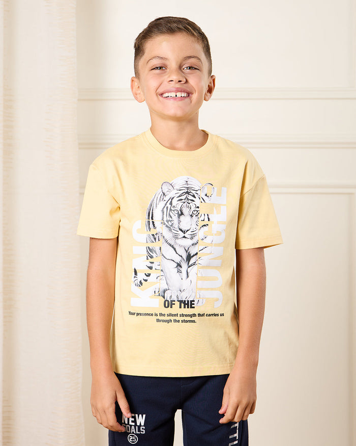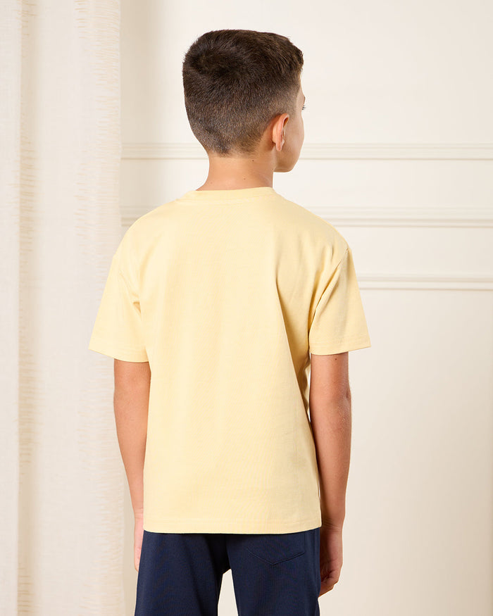تيشيرت مطبوع باللون الأصفر للأولاد الصغار