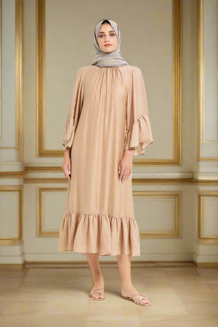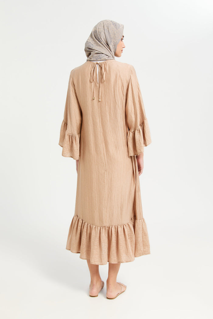Women Apricot Textured Ruffle Detailed Midi Dress