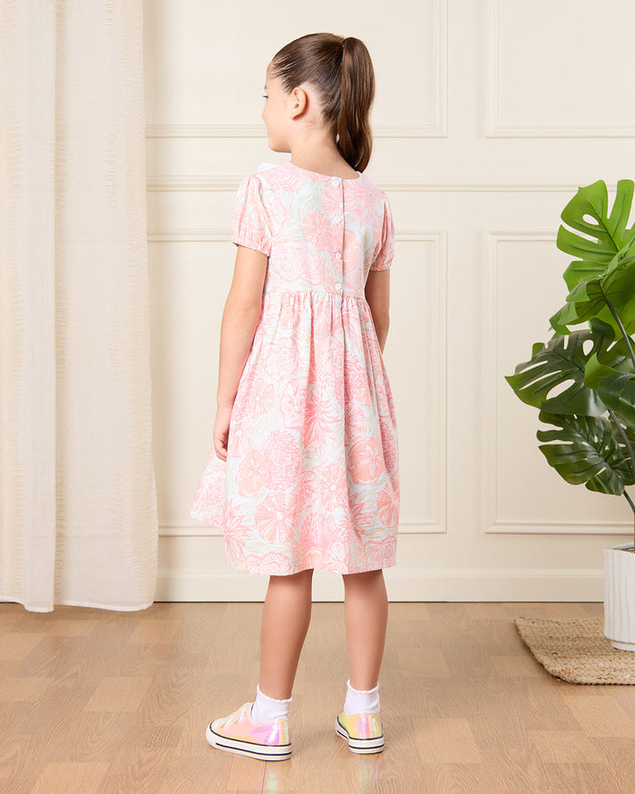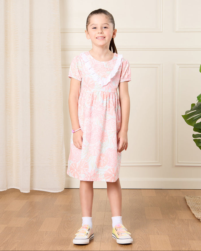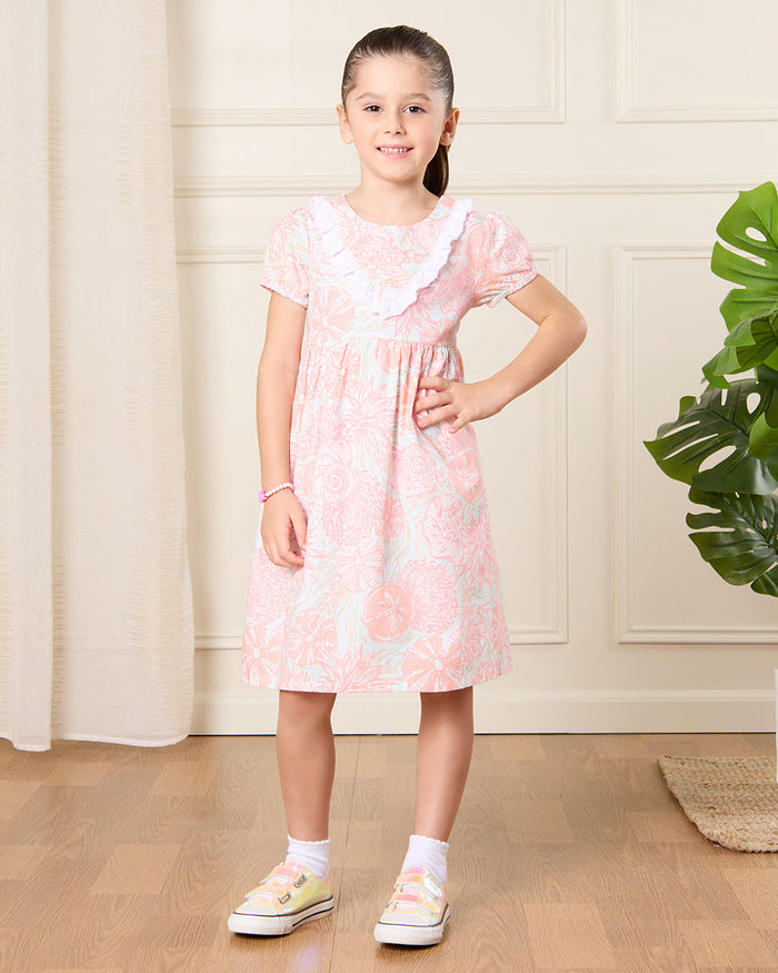 A charming puff sleeve dress for girls, beautifully designed with delicate Schiffli embroidery details. Perfect for birthdays, family gatherings, or a casual day out, this dress adds a touch of elegance to your little one's wardrobe.