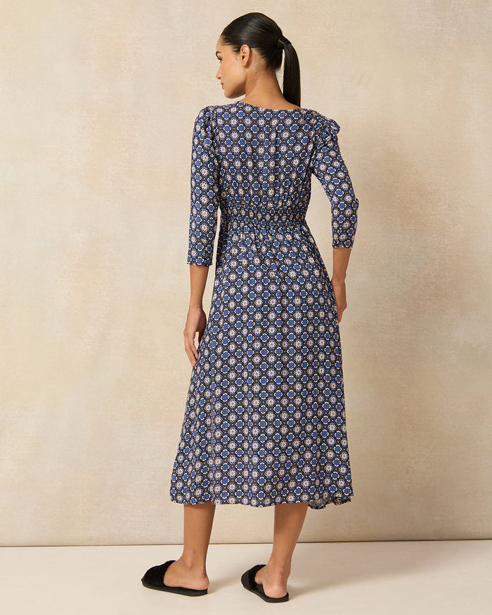 Women Navy Allover Print A Line Midi Dress