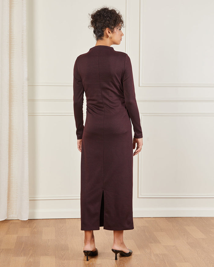 Timeless and refined, this elegant burgundy dress blends sophisticated cuts with delicate details. Perfect for evening events, formal dinners, or special celebrations.