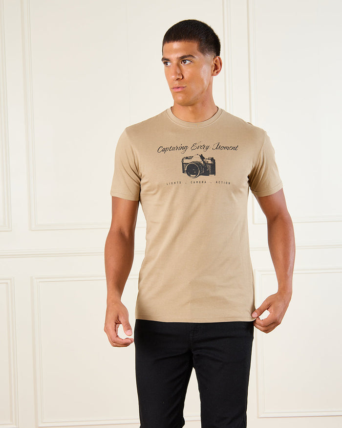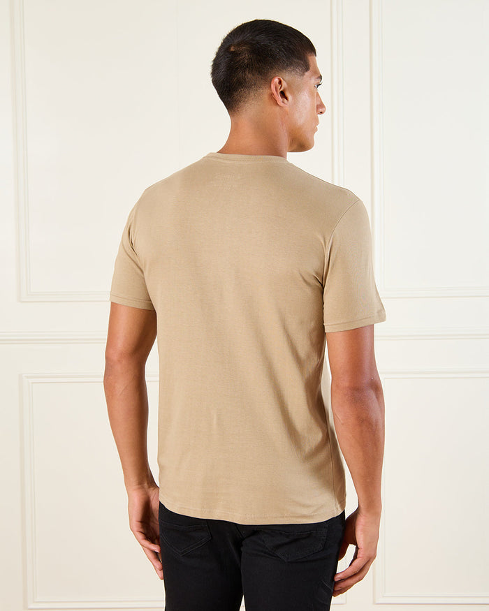 Men Beige Basic Graphic T-Shirt