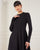 Elegant and minimal, this black knit midi dress features a fitted top and flowy skirt for a timeless silhouette.