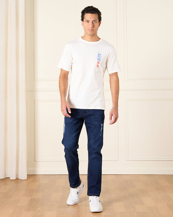 Men Navy Embellished Straight Fit Denim Jeans