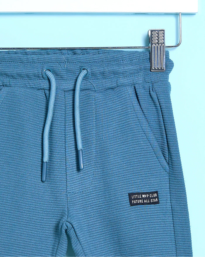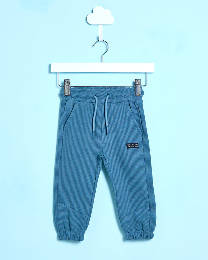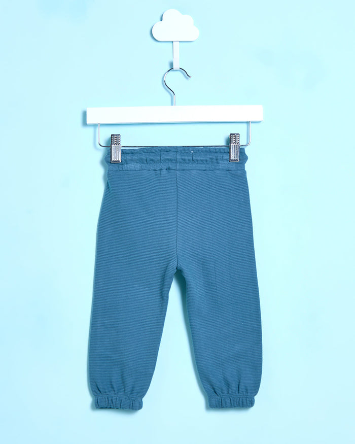 These blue active pants bring a fun and playful vibe to your baby boy’s outfit. With ribbed cuffs and a comfy fit, they’re perfect for little adventures indoors or out.