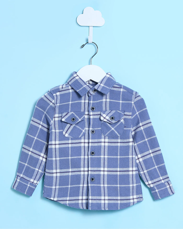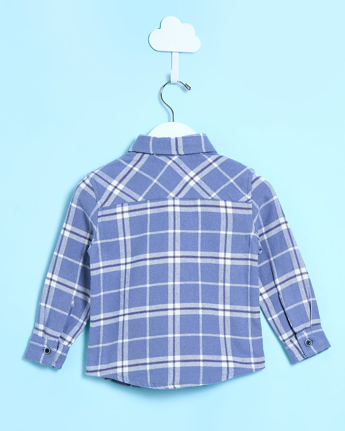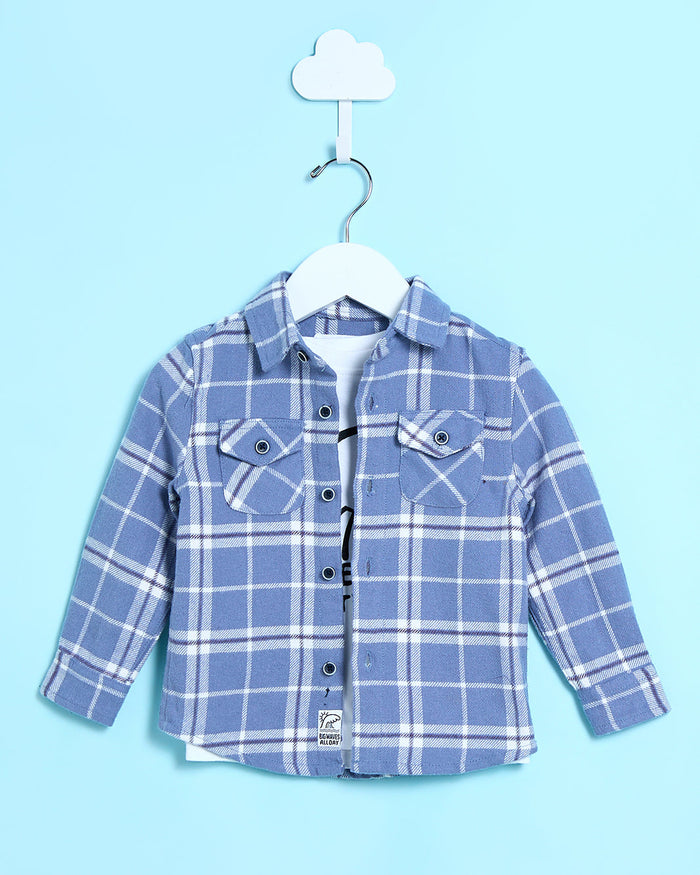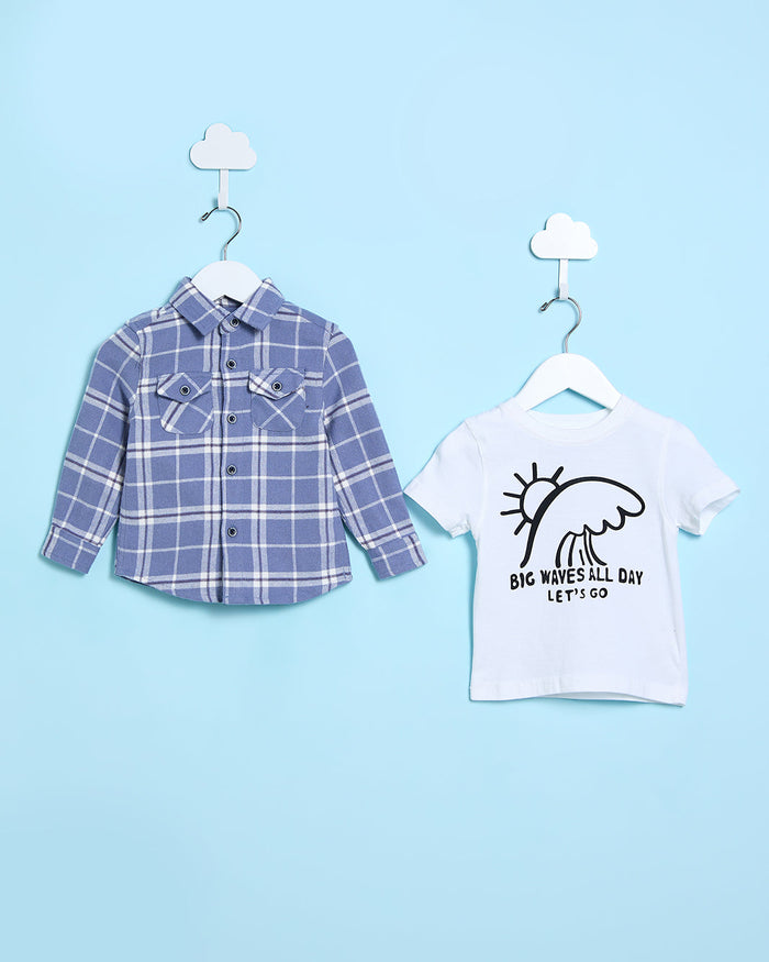 Infant Boys Blue And White Checked Shirt With T-Shirt Set (2 Piece)