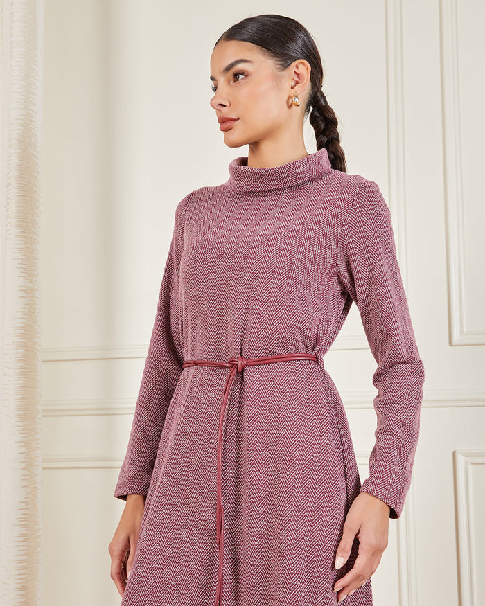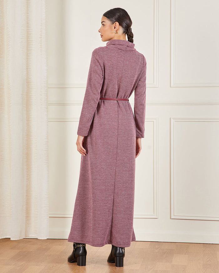 Timeless and refined, this elegant burgundy dress blends sophisticated cuts with delicate details. Perfect for evening events, formal dinners, or special celebrations.