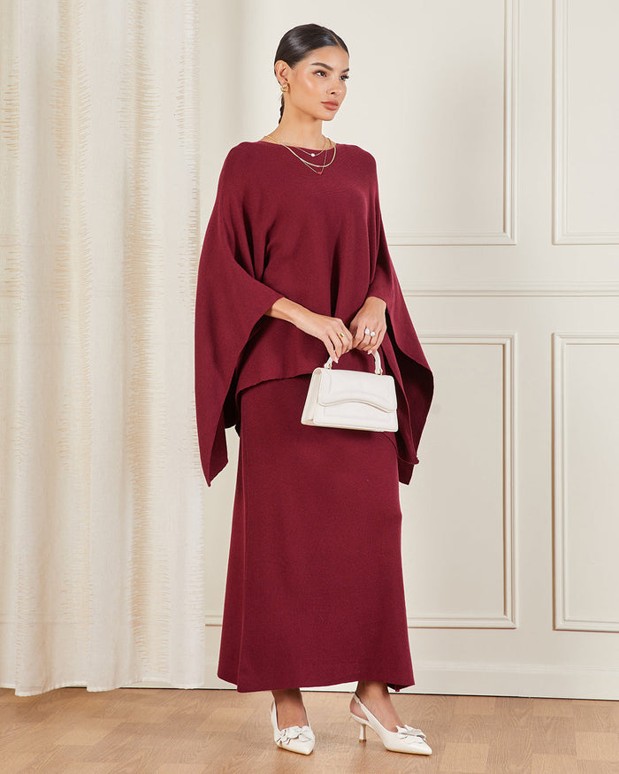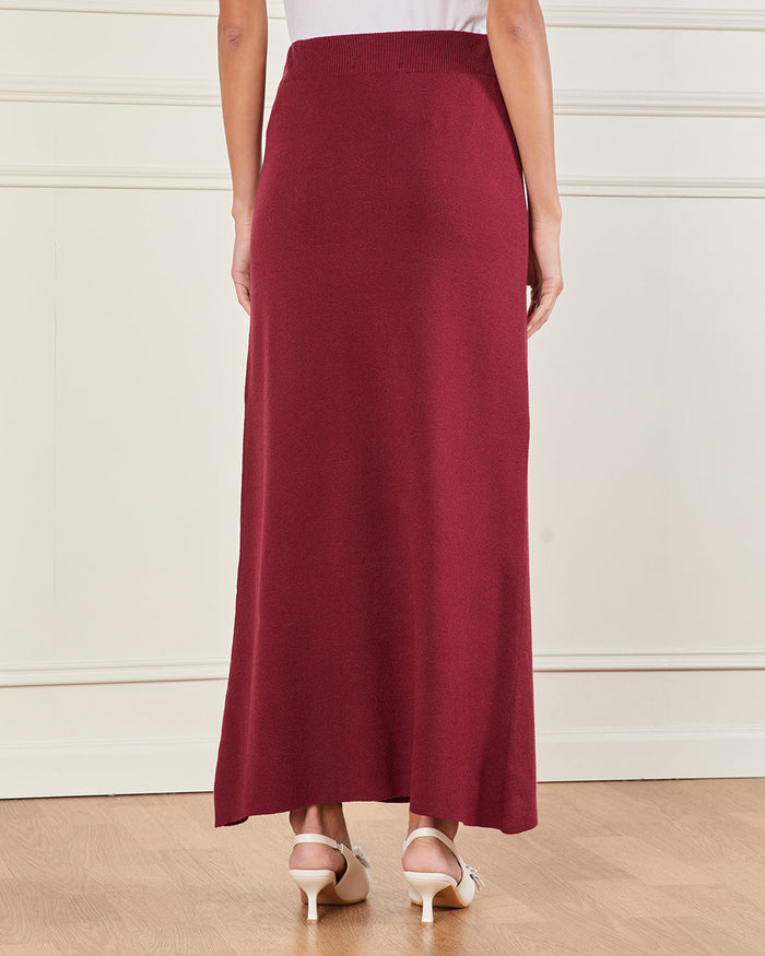 Women Burgundy Knitted Skirt