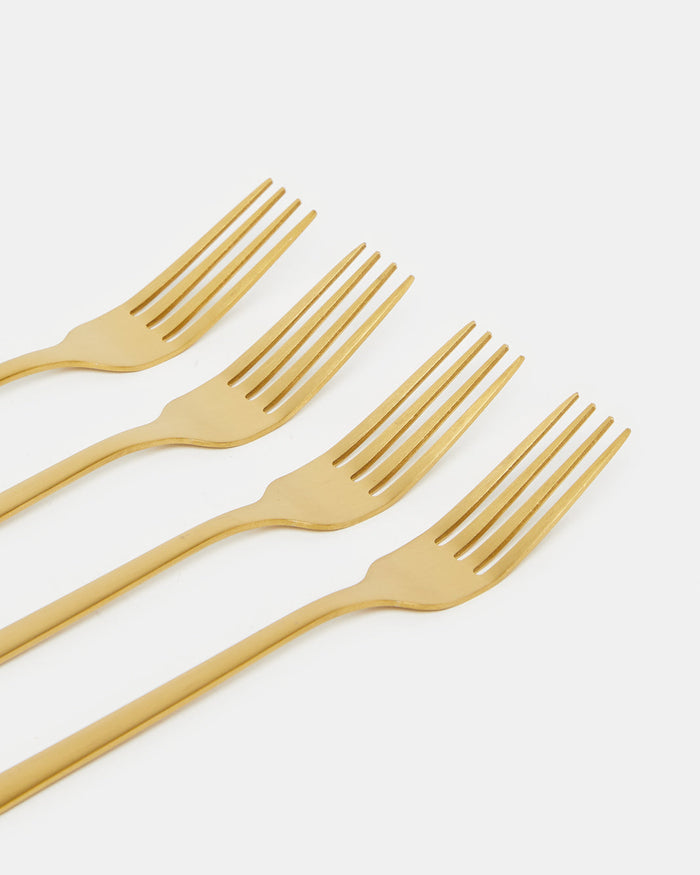 A chic set of golden cake forks designed for serving desserts with grace. A stylish addition to tea time or special celebrations.