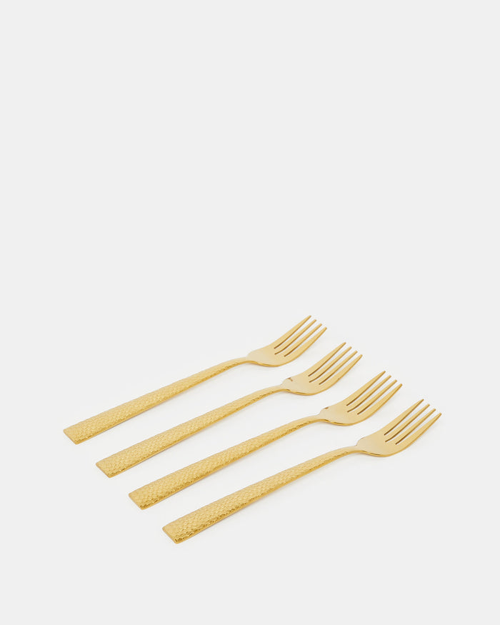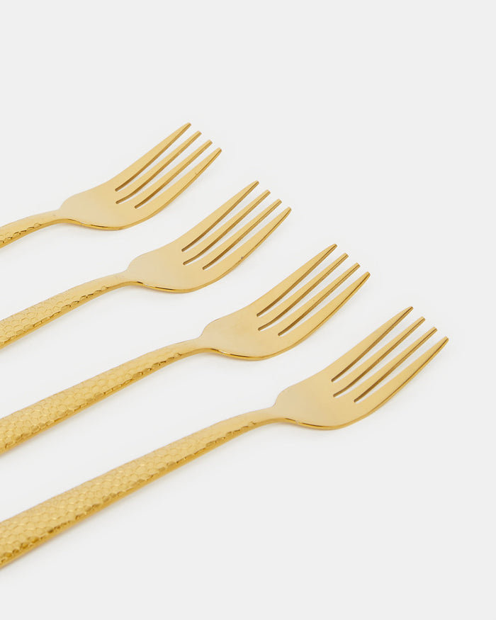 Gold Cake Fork Hammered Finish Set (4 Piece)