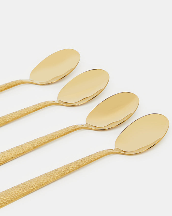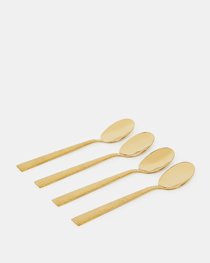 Gold Dinner Spoon Hammered Finish Set (4 Piece)