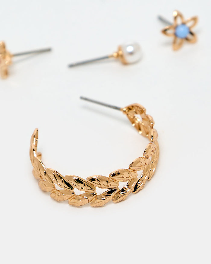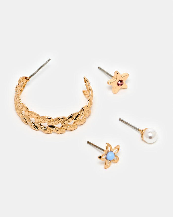 Women Gold Embellished Earring Set (3 Pairs)