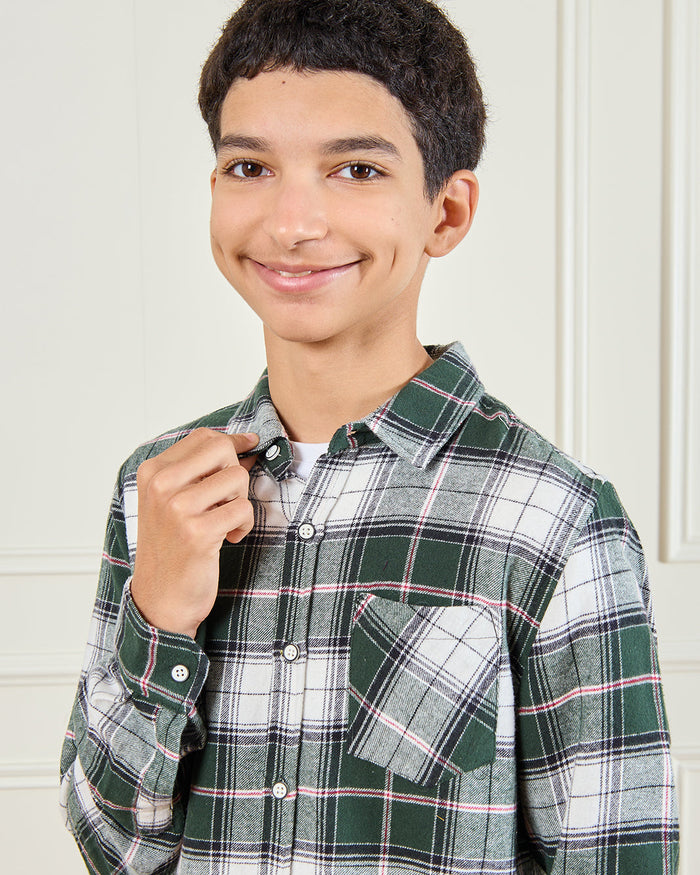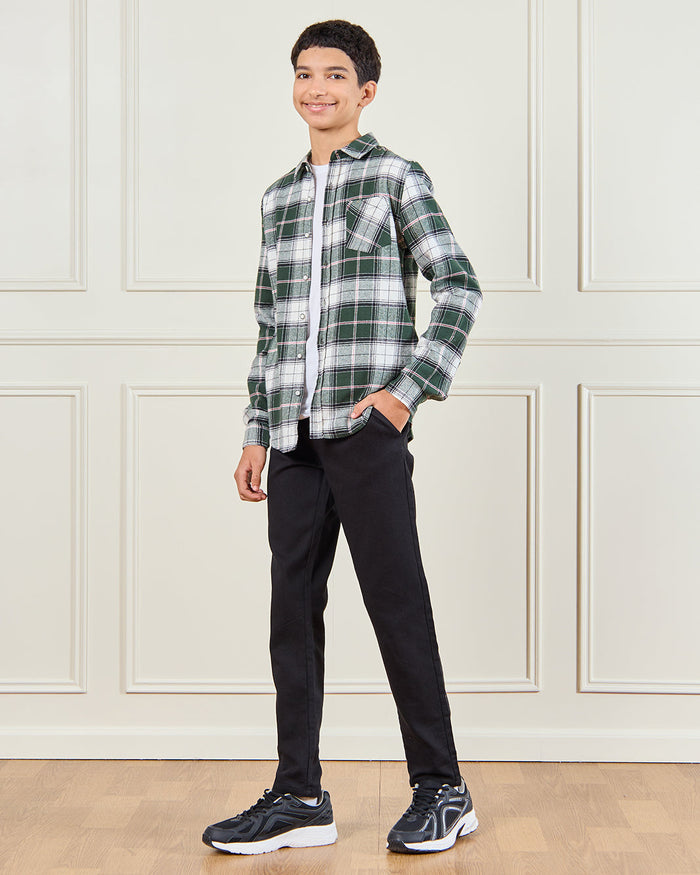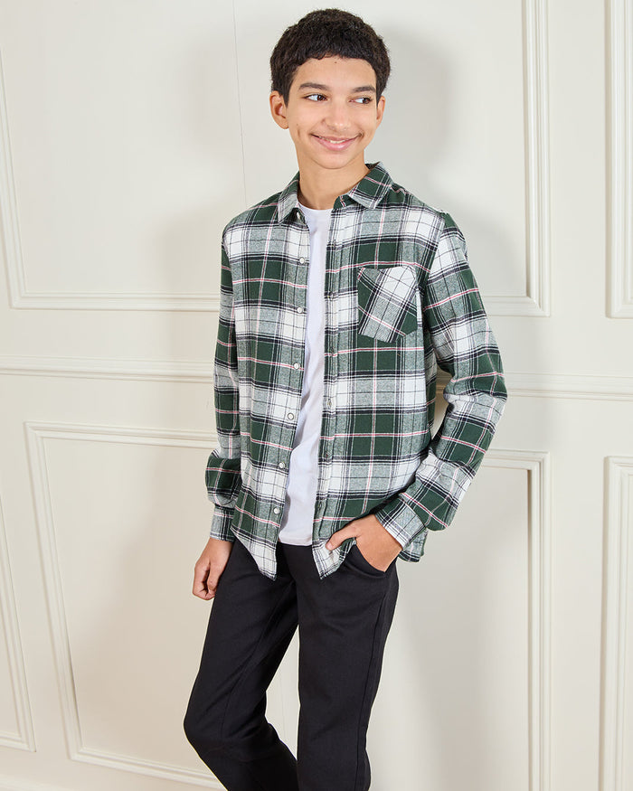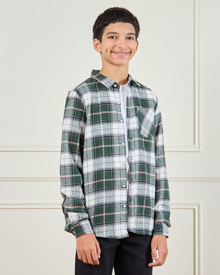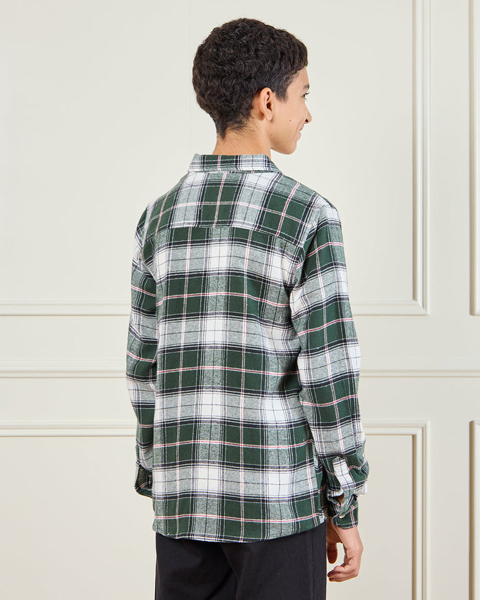 Senior Boys Green Flannel Casual Shirt