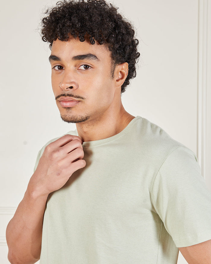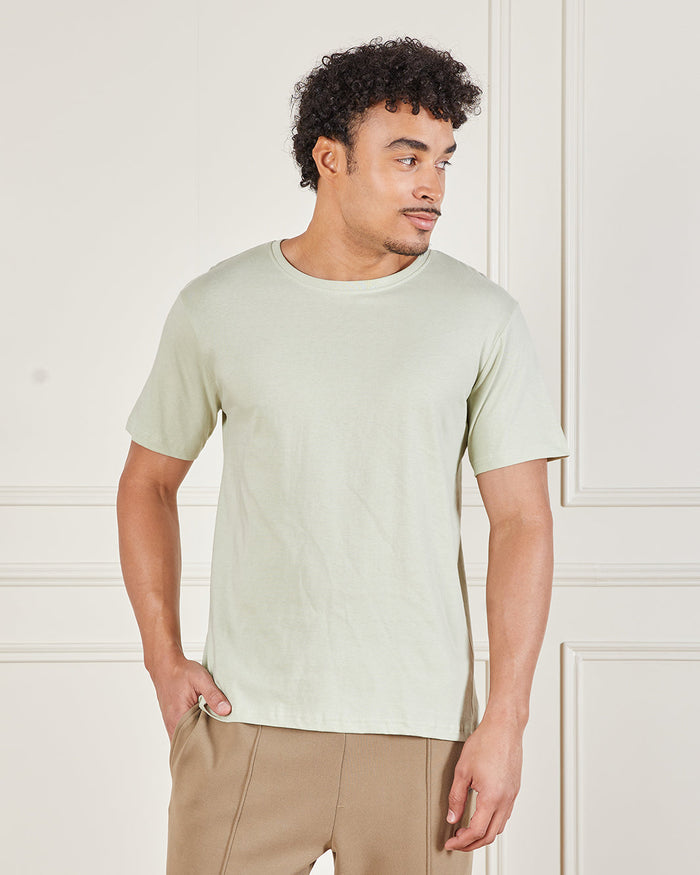 Men Green Solid Crew Neck T-Shirt