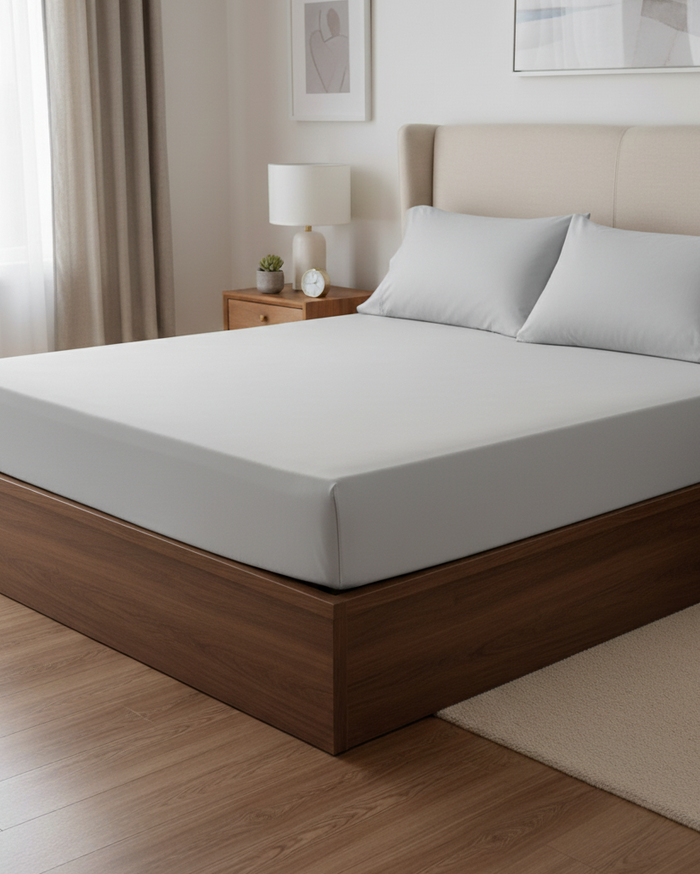 A soft and breathable cotton fitted sheet in single size, crafted for a snug fit and peaceful sleep. Ideal for everyday use with lasting comfort and durability.