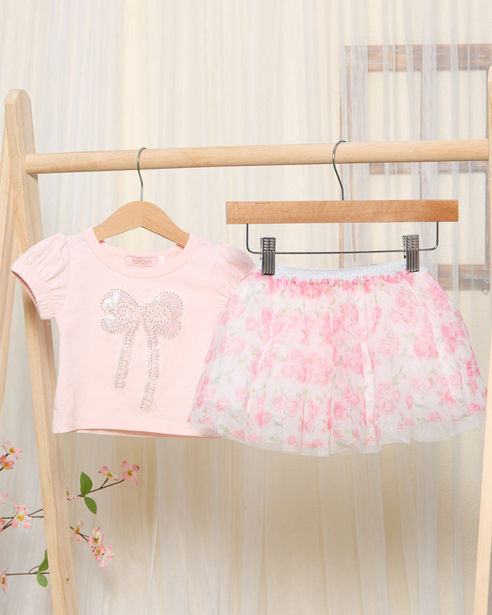 Infant Girls Pink Bow Top With Skirt Set (2 Piece)