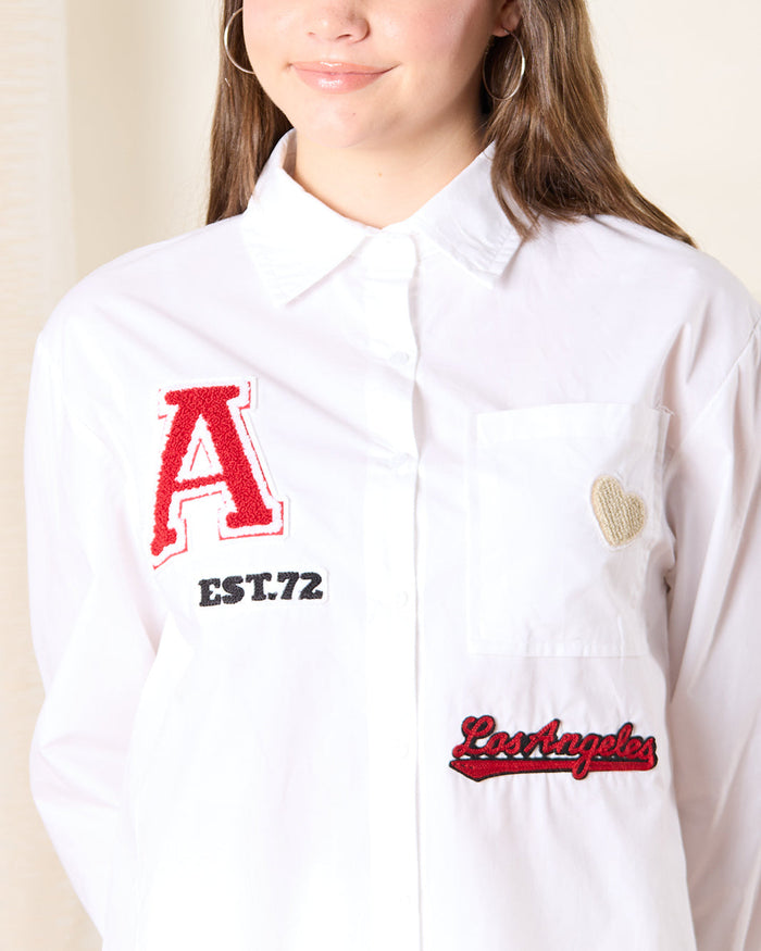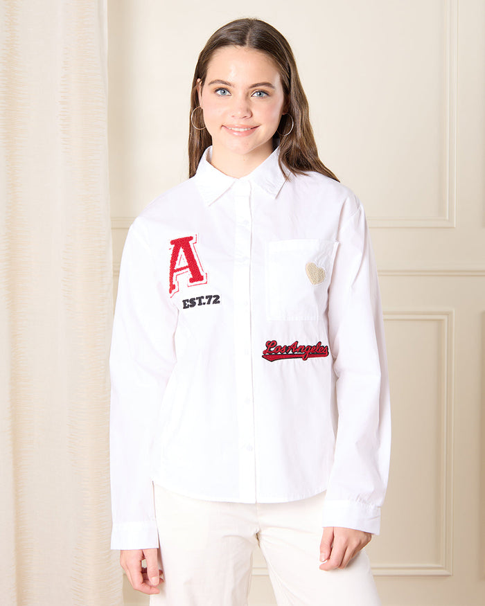 Adorned with sweet details and playful charm, this shirt adds a stylish touch to any outfit—perfect for school days or special occasions.